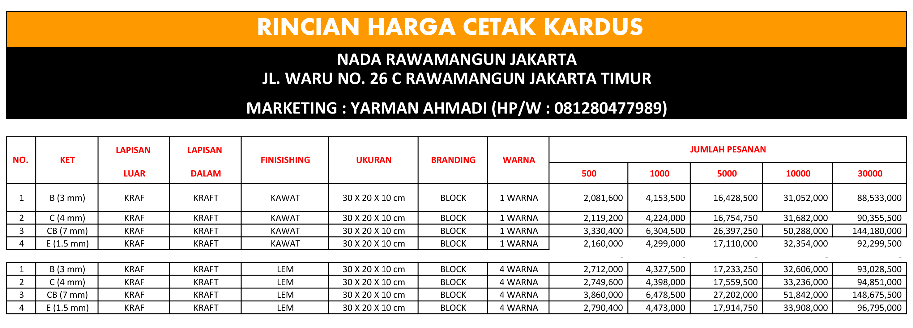 Untuk patokan harga saja bisa dilihat dari daftar harga cetak kardus di tempat kami.