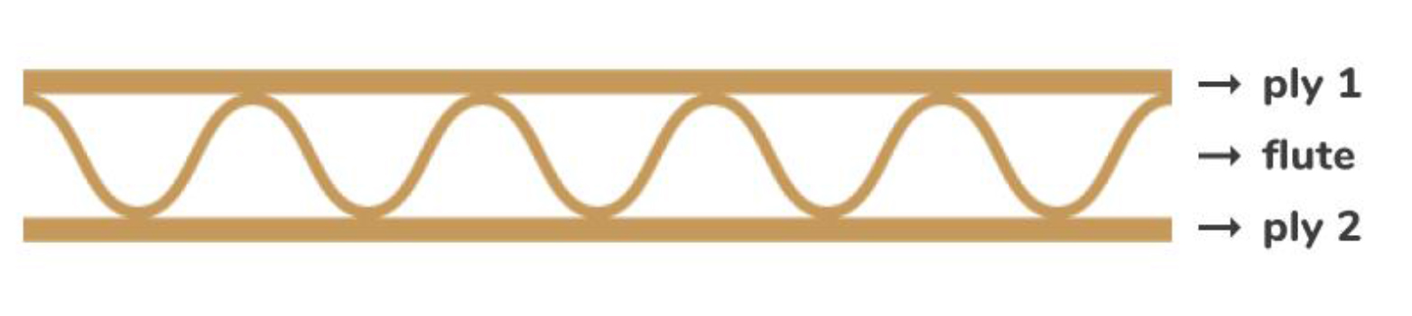 Adapun Bahan corrugated berbentuk lembaran karton yang tediri dari beberapa lapisan. Lapisan tersebut memberikan kekuatan tumpun bagi kardus agar menahan beban muat barang yang disimpan dalam kardus. Untuk Lapisan pada lembaran karton corrugated biasa dibagi menjadi lapisan luar atau plai dan lapisan gelombang atau flute. Jadi berdasarkan jumlah lapisan tersebut, corrugated dibagi menjadi 2 jenis yang paling umum yaitu Corrugated Single Wall, dan Corrrugated Dobule Wall.