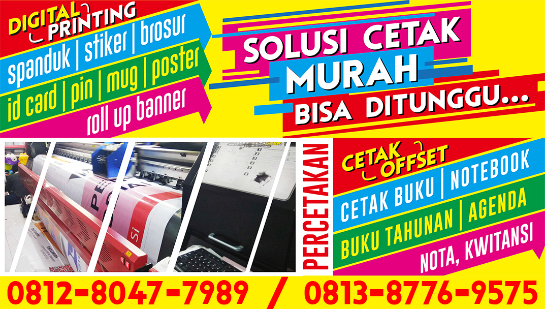 PT. Nada Ra-Ja sebagai perusahaan yang berpengalam bergerak dibidang Percetakan dan menjadi pusat penyedia Jasa Digital Printing Indoor dan Outdor terlengkap dengan layanan 24 Jam di Jakarta Timur. Melayani seluruh jasa digital printing dalam pembuatan cetak spanduk, banner, x banner, roll banner, cetak tripod banner, umbul-umbul, baliho, poster, stiker. Anda bisa langsung memesan segala kebutuhan Cetak Digital Printing di PT. Nada Ra-Ja, konfirmasi dan berkonsultasi untuk segala kebutuhan anda, bisa cetak dengan quantity skala besar dan satuan, harga tetap sama dan murah, kualitas tetap yang terbaik.